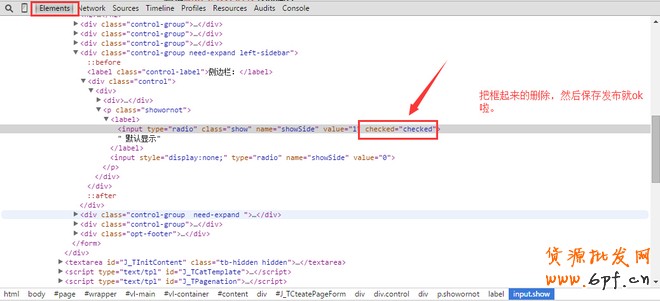 最后,側邊欄的默認顯示是強制開啟的,這個時候把你的鼠標移到默認顯示的圓圈圈上,右擊,然后審查元素,找到“checked="checked"”把它直接刪除保存發布,然后950px的詳情頁就制作好了。