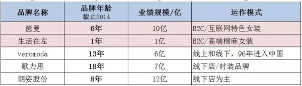 女裝的風格、年齡的定位,可以有很多的差異化,女裝發展多樣化是必然的趨勢。按此前公開數據整理,匯美集團2014年總銷售業績約10個億,茵曼、初語兩個品牌單量級超5億。方建華在其微信公眾號文章中透露,“生活在左”業績達一個億,今年還將誕生三個過億的新品牌。