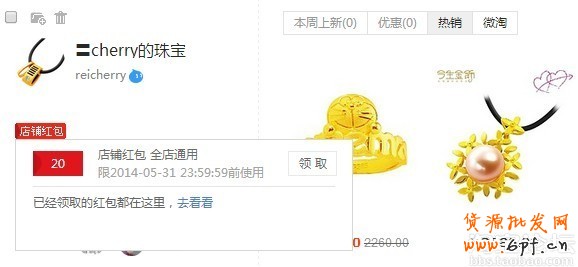 買家可以在自己的收藏夾看到店鋪紅包并領取。