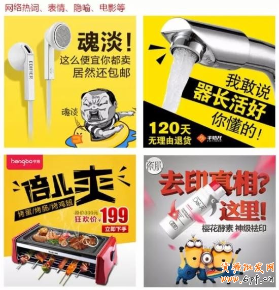 通過一些特殊的方法來吸引注意力,要注意淘寶規則,如果使用的圖片有侵權,明顯等,遭到投訴后不堪設想!