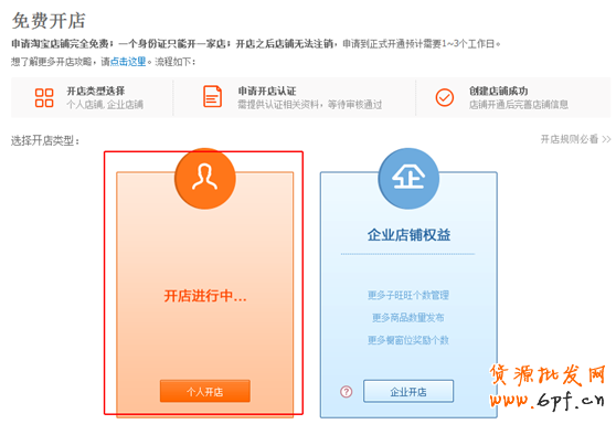 三、個人店鋪與企業店鋪的區別之二,開店認證的入口(個人開店和企業開店)