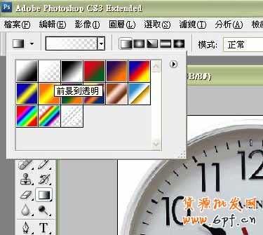 7. 選擇的漸層是預設組的“前景到透明”,因為前景是白色,所以也就是“白色到透明”。
