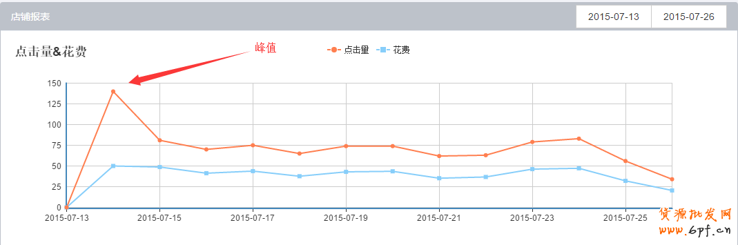 大家可以在下圖清楚的看到,7月14日的時候,花費不變,但是點擊量出現了一個小高峰,是不是算作意外的驚喜呢?我相信,結合店里的清倉活動,銷量應該會有一個增長的。