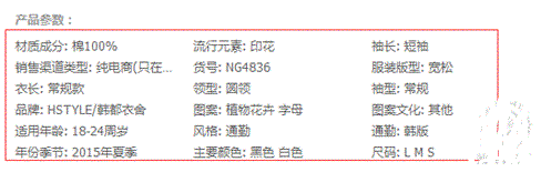 標題優化好了,我們就來看看寶貝屬性的相關優化了。店鋪賣家在后臺完善寶貝信息時,切忌不要胡亂填寫,不要太簡潔,最好詳細的進行完善,不留空白。在淘寶天貓后臺屬性完整是很重要的,關乎店鋪DSR動態評分,以及你的寶貝的屬性是否能夠詳細展示在買家面前。