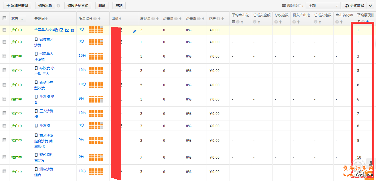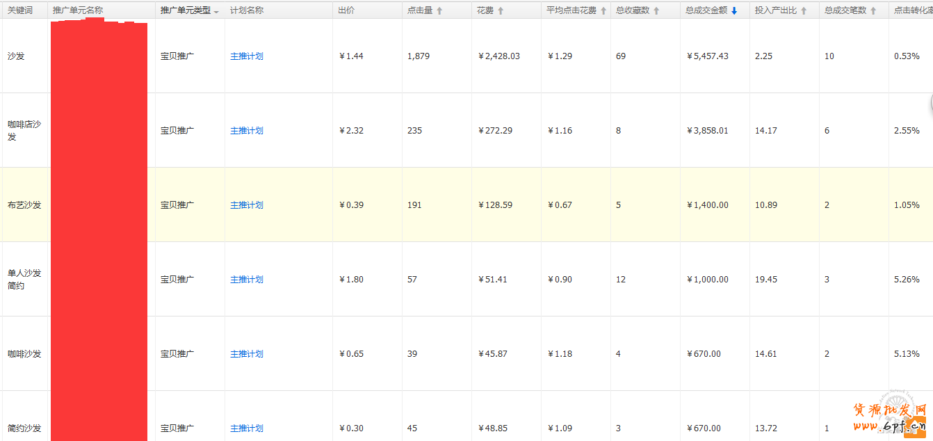 單人沙發的銷售面只有餐飲業和酒店,而單雙人的組合沙發不單單是餐飲業和酒店,小資家庭也可以使用。故此,直通車在推廣重心更多的放在單雙人沙發上。