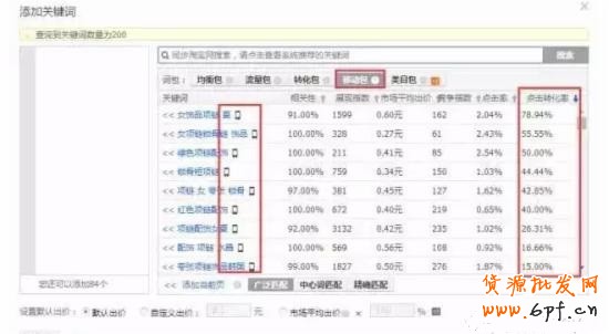 2、中期提流量:根據7天數據反饋,點擊率若有上升,轉化有提升的情況下,可以繼續添加關鍵詞,無線端的詞為主,此時詞的質量得分會比較高,引流難度不大,提高無線端占比和關鍵詞出價。