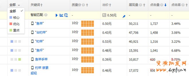 至于重點關鍵詞,這個指的是ROI虧損的關鍵詞,這類詞就像班級的差生,老師需要重點關注一樣,有時會決定班級的平均成績,就像這個重點關鍵詞一樣,這類關鍵詞決定了整個直通車的ROI高低的問題。那么對于重點關鍵詞我的建議是借助匹配方式去優化來調整你的流量大小。當然前提你的先把關鍵詞優化到10分。