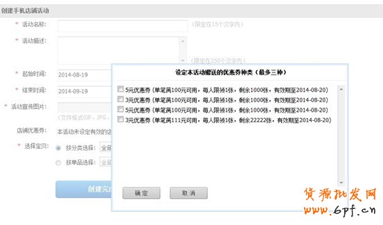 在PC端設置完成后,要在無線端透出多張店鋪優惠券,需要創建活動,詳見下圖: