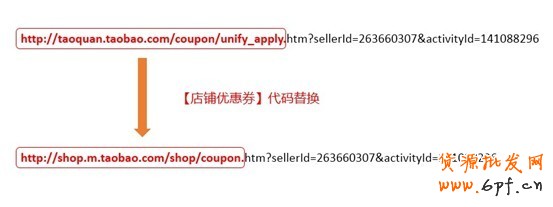 ·設置店鋪優惠券時,把PC端設置好的優惠券頭部置換成淘內鏈接