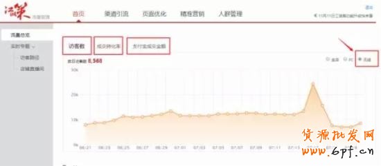 以江湖策為例,看下圖,這是無線的頁面。大家可以從中看到訪客數、成交轉化率和支付寶成交金額。從這張曲線圖中我們可以看出流量、金額的波動情況,這是最基本的,大家要了解分析清楚。