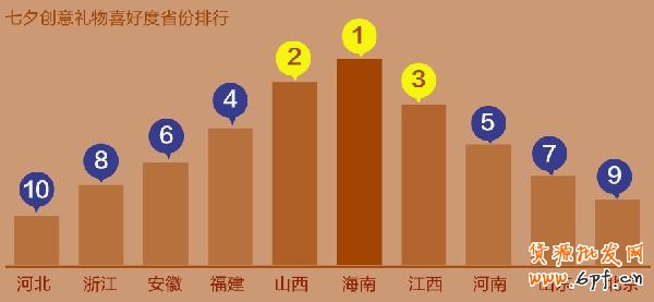 淘寶數據還告訴我們,浙江、廣東、江蘇的銀是購買七夕禮物最多的,莫非是這些地區比較富裕?江西、內蒙古則是排名最靠后的。