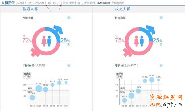性別和年齡很重要,跟我們選擇產品丶做詳情頁都有很大的關系。特別服裝類的,賣萌裝跟成熟裝人群明顯不同,選擇優質人群可能做起來會容易很多。可以看出,女性買家居多,35歲以上的,成交喜好度挺高(成交喜好度(TGI)=搜索詞成交的該人群占比全網成交的該人群占比100),占比也不小