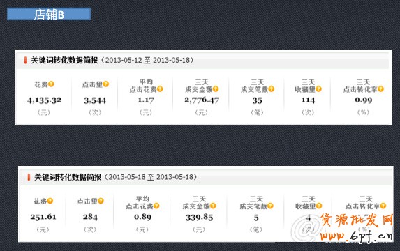 店鋪b:主要的操作是針對提升轉化率,但是前后對比數據,流量、點擊、轉化各方面都有了比較明顯的提升。