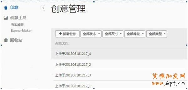 在創意操作面板里面我們可以上傳創意、編輯未審核的創意,甚至刪除不需要的創意。上傳創意的時候要注意創意等級(展位超市里面有注明),選錯的話審核后是不能用的。