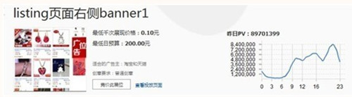 如下圖,點擊“查看展位信息”,我們可以看到右側的該廣告位的昨日流量曲線。對此,小編建議商家們可以參考曲線流量的多少來及時調整預算和出價,高峰期黃金期的競價價格會更高一些。