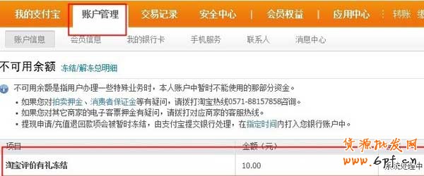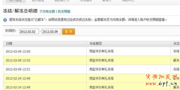 4、每一個評論有禮活動發獎對應的資金情況可以在賬戶凍結/解凍明細中查看: