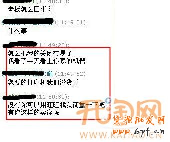 雙方聊天記錄顯示:商家是私自關閉交易。