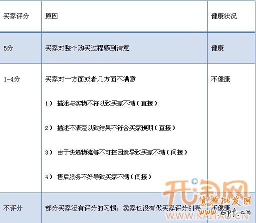 上面的表格簡單列出了買家評分的幾種情況和原因(直接或間接),相信很多賣家都應該有所了解,下面讓我們簡單來分析一下描述低分和不評分的原因:
