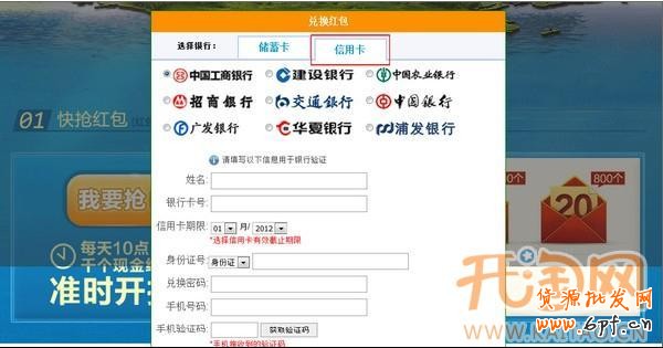 第二步:點擊開搶,就讓你填寫儲蓄卡或者信用卡的卡號、姓名、身份證、密碼等一系列的個人信息