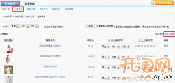 7.上架計劃都制定好了之后,可以在查看排期表里面找到。點擊:自動助理→上架優化→查看排期表