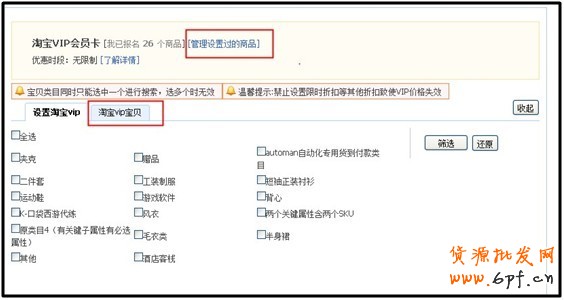 二、點擊“淘寶VIP寶貝”后,會出現如下紅字,然后點擊“取消老VIP設置商品”。
