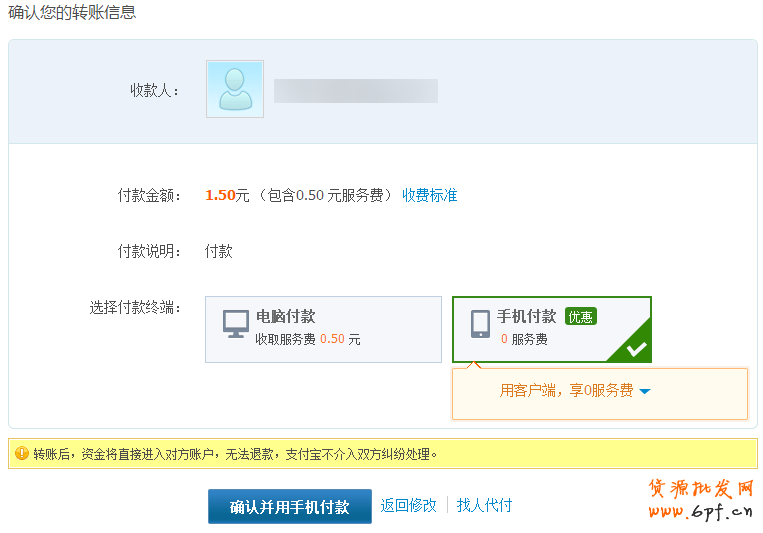5、選擇手機付款:點擊【手機付款】——【確認并用手機付款】;