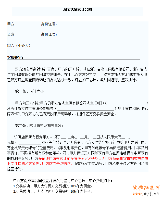當前位置: 貨源批發網 » 網商學院 » 開店基礎 » 如何開網店 » 淘寶店鋪轉讓合同范本(供參考)