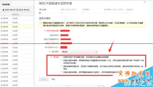 注意事項:申請退款的時間是除了每個月27號到次月8號的時間,申請退款的時候注意事項里面的4個勾選之后才可以提交。