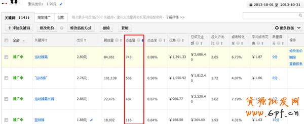 上面提到,前期加滿200個詞的目的,是全方位去為寶貝引入流量,測試這些關鍵詞的點擊反饋。到了一定周期后,寶貝流量達到目的了,需要進一步做roi,將詞做精準的階段,可以根據轉化數據,刪除30天內無點擊的詞,這些詞可能是與寶貝相關度低,或者是相關度很高但市場搜索量很低的詞,刪除這些詞的目的,是進一步提升點擊率,從而達到提高整體寶貝質量得分的目的。