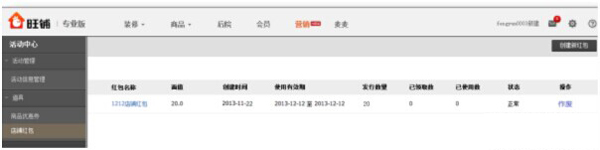 第三步:查看已設置的店鋪紅包狀態。店鋪紅包設置后臺首頁會有紅包被領取的數量、紅包被使用的數量。“已領取數”是實時更新的,“已使用數”則有一定時間的延遲。