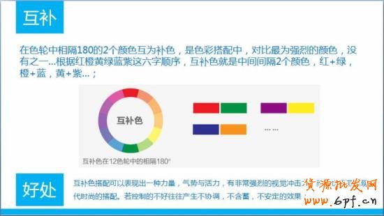 上面圖片中的案例,都是互補色,他們的沖擊力都比較強,會感覺很時尚,動感。這是很多人在做主題是都會用到的。