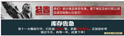 2.流量大時,咨詢量會增多,客服可能無法招架。此時,設計可以迎合消費者心理,通過優化頁面宣傳文案減輕售前客服壓力。如制作“15分鐘內付款有效,超時庫存不再預留”等推廣元素,強化搶購氛圍,讓消費者加速下單。此外,可以實時公布銷售數據,激化瘋搶氣氛。對一些咨詢量較多的問題,可以設計公告統一答疑。