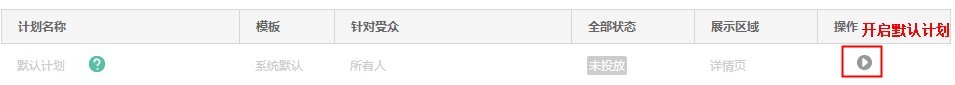 方法二:登陸“心選”后臺,在首頁找到“默認計劃”,點開啟按鈕,即可。如下圖: