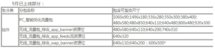 流量包即綜合類流量包,包含PC和無線兩部分,這些流量包中精選了站外知名度不高,流量小,效果好的資源位進行組合。在創建計劃的時候不用再為是否選擇流量小效果好的資源位而發愁,綜合流量包優勢明顯:覆蓋人群廣,效果好,點擊成本穩定的優勢。