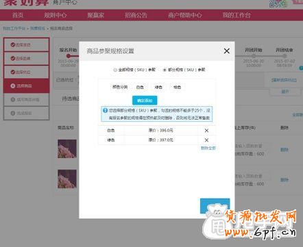 三、如果是選擇部分規格商品參聚可以選擇“部分規格參聚”,部分規格參聚同樣會影響參聚價格(按照部分規格30天最低價校驗),如下圖: