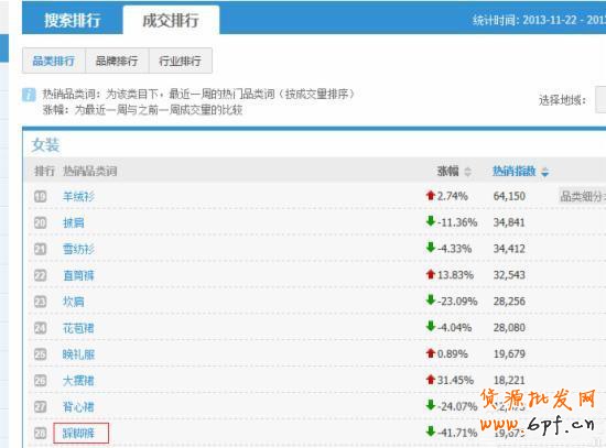 找到我們自己所在的類目,可以找出最近的熱詞有哪些,根據自己店鋪的情況,適當的把一些趨勢熱詞放進我們的標題描述里面,當然不是說搜索的詞越熱越好,有些熱詞搜索量非常大,但是有些是不適合用的。我們主要應該看的是 “成交排行”。大家自己去體會原因。