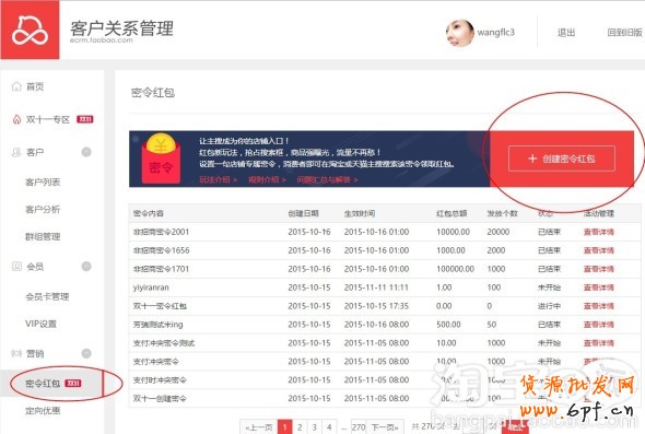 找到”雙11密令紅包“。點擊右側的”創建密令紅包“。