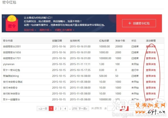 4、密令紅包創建成功后,即可在列表查看詳情和效果數據。