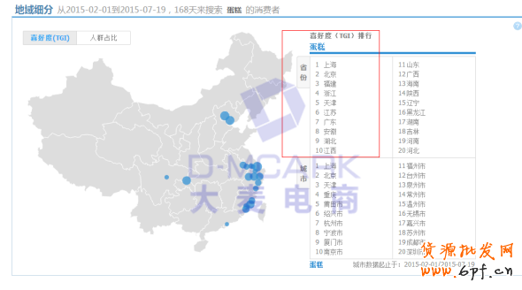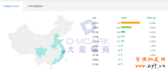 另外,可以通過淘寶指數和生意參謀數據分析,針對高轉化的地區進行投放,節省花費。比如,這個店鋪是蛋糕類目的,根據淘寶指數對這個類目喜好度TOP10(如圖1)以及該店鋪近幾個月的轉化TOP10的地方(如圖2)進行對比,可以明顯看出上海和北京的喜好度最高,而且相對低轉化率也是最高的,所以可以只選擇投放這2個地域,其他的選擇暫停投放。