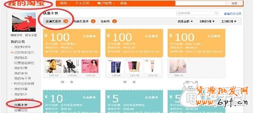 2、我的淘寶-優惠卡券-店鋪優惠券