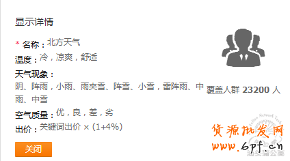 此天氣人群數據反饋是近30天的數據反饋,把全部天氣人群屬性分離出來進行測試,可以更明確的知道哪種天氣人群屬性是適合這款寶貝,適合這個賬戶。