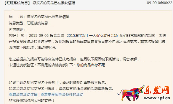 A.收到千?;蛲逋送ㄖㄈ缦聢D)則代表當前報名的商品已被系統自動清退,系統會告知清退原因