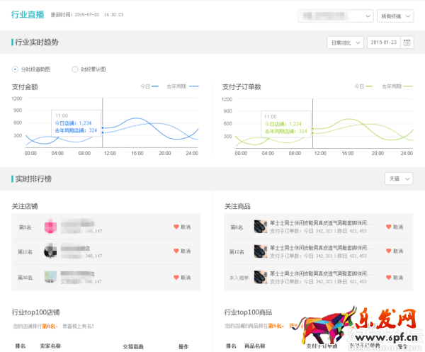 另外行業直播還提供了關注店鋪和單品的實時排名情況以及行業TOP100店鋪以及單品的實時排名情況及排名動態。