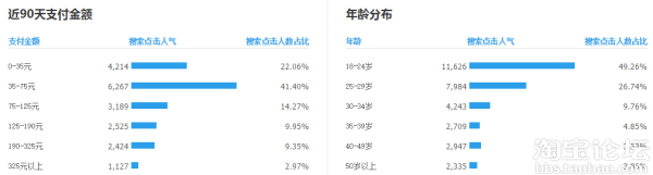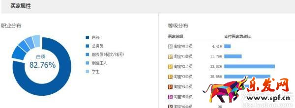 買家人群方面,從性別、年齡、地域、價格,進買家人群的篩選。篩選后,展示買家的屬性信息,主要包含職業分布、等級分布、省份分布、城市分布排行等。同時,有了買家行為的分析,從下單及支付時段分布、搜索詞偏好、屬性偏好、近90天購買金額、近90天購買次數等數據。另外還有買家品牌購買偏好、買家類目購買偏好等。