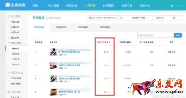 子行業的交易排行絕對是對葉子類目的一大福利,特別是 支付金額較上一周期 這個數據,包括買家數占比,可以清晰的告知我們當季最熱的子行業和競爭情況,這里列出了支付金額較父類目占比、支付金額較上一周期、賣家數占比,所有菜單都是按照百分比來展現的,清晰得知每個葉子類目的情況。