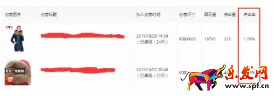 比如上面的這個圖片我們只是簡單的突出了“大毛領”這個特點,點擊率就相對原來的圖片有了不小的提升。現在的直通車創意圖片是可以有4張創意圖片的,我們盡量的多做幾張創意圖,用輪播的形式來測試圖片的點擊率情況,用數據來說話而不要靠自己的想象。