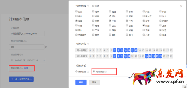 選擇投放時間和地域:在“高級設置”里選擇投放地域和時間,時間地域根據店鋪顧客的地域分布和成交高峰來選擇