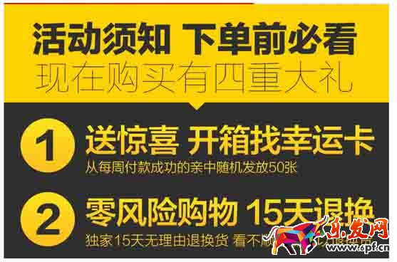吸引住消費者的眼球后,讓買家對你的寶貝感興趣。這個感興趣一般情況下可以是寶貝獨特的賣點,也可以是一些有吸引力的活動,目的是讓消費者有進一步讀下去的欲望,并且產生購買興趣。比如下面的內容: