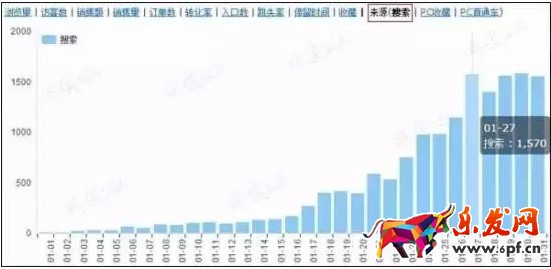 上架的比較匆忙,測款就被跳過了,或者說我們是從后面的數據中發現這個款的,也是測款的一種方式吧。其實這個款在上架了近20天,新品標都消失了,一直表現平平,上架10天之后每天能賣個一二件,直到1月15日,從后臺數據發現這個款(轉化率,收藏率,放購物車率,停留時長,跳失率,搜索流量增長曲線等),雖然流量不大,但轉化率較穩定,加上其他數據也可以,所以決定把它定為主推款,重做寶貝詳情,直通車選擇更符合它的關鍵詞。最主要的還是重做的詳情頁,特別是無線端詳情頁,轉化率和其他各項數據都提升了不少。詳情頁的優化方向可以根據搜索點擊量或成交量大的關鍵詞,還有評價里出現的問題,你可以比較容易找到需要解決的問題。