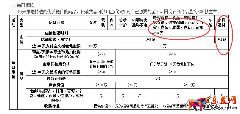 金幣所有類目每日幣搶的報名要求,除了家具建材之外,其他等級要求都是5鉆以上。